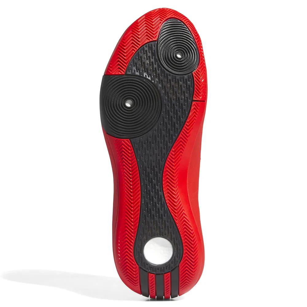 La semelle extérieure ressort en noir et rouge, pour faire ressortir les trois bandes de la marque adidas en noir au niveau du talon.