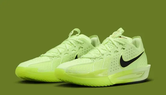 Nike avait également présenté ce coloris « Volt » qui n'était pas passé pas inaperçu, et qui est désormais disponible à la vente en France. La tige ressort principalement dans ce vert fluo appelé « Volt », avec seulement un « Swoosh » noir sur l’empeigne. L’inscription « GT 03 » apparaît en doré sur la languette, tandis que l’ensemble repose sur une semelle en noir et vert « Volt »