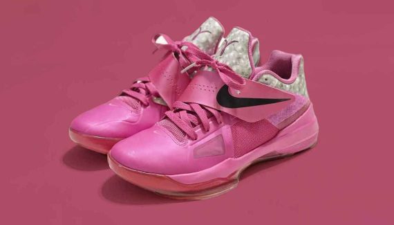 Après avoir ressorti la KD 3 des cartons en 2023, la marque à la virgule a tenu son pari de relancer la KD 4 en 2024. Plusieurs modèles ont déjà émergé, comme la “Year of the Dragon 2.0”, la “Weatherman”, la “Galaxy” ou plus récemment la “Nerf”. Cette fois, la chaussure sortie en 2012 va lancer la campagne “octobre rose” visant à promouvoir le dépistage du cancer du sein comme il se doit, puisque c’est la toute première KD 4 “Aunt Pearl” qui va refaire surface.