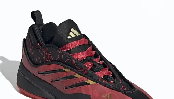 Le coloris « Scarlet » remplace les touches de vert kaki par du rouge écarlate, pour accompagner cette fois le noir et le doré, utilisé également sur la languette et l'avant du pied où figurent les logos d'adidas. De quoi lancer définitivement la campagne « Dame 9 » en attendant la reprise de la saison NBA et de nouveaux coloris.