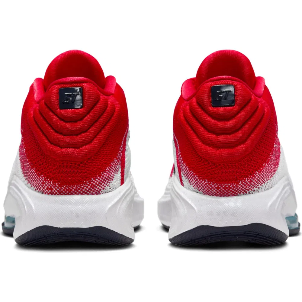 Celui-ci dispose d’une petite nuance puisqu’il ne reprend pas exactement les couleurs du drapeau américain. La tige en blanc et rouge est en effet contrastée par un “Swoosh” noir. Même chose au niveau de la semelle extérieure, entièrement noire, ou sur les logos présents au niveau du talon et de la languette.