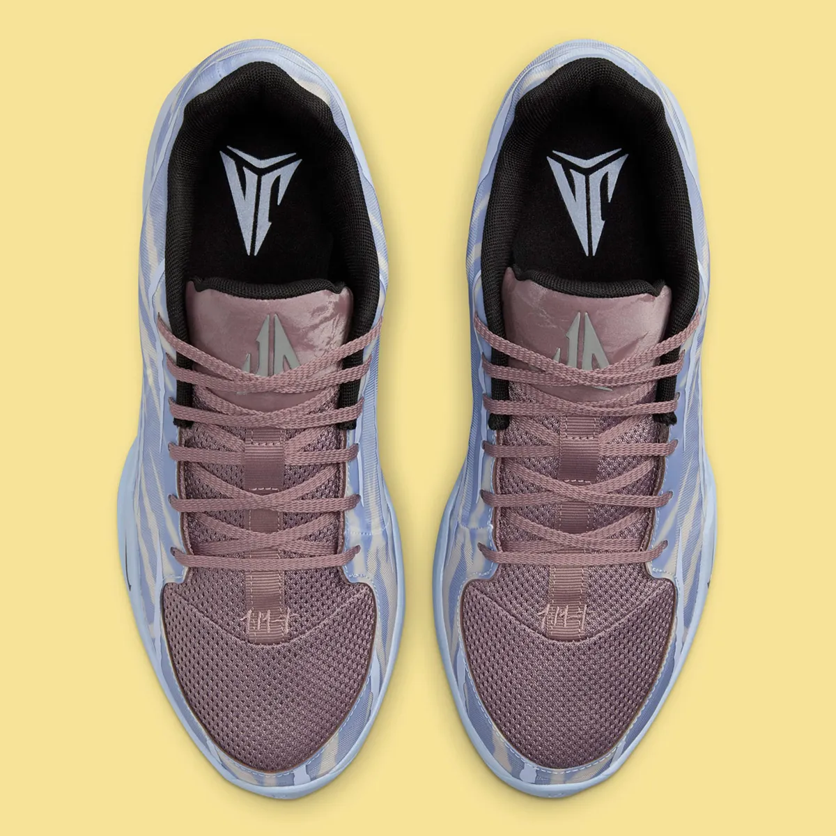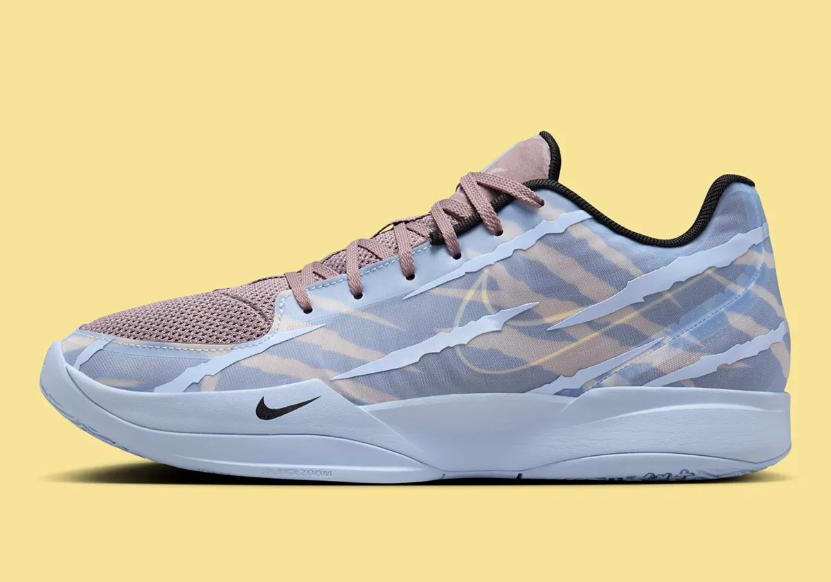 Le reste de la chaussure se décline entre bleu clair et noir, ressemblant aux couleurs des Grizzlies. Le “Swoosh” est bien plus discret que sur la Ja 1. Le logo du joueur est en revanche toujours sur la languette.