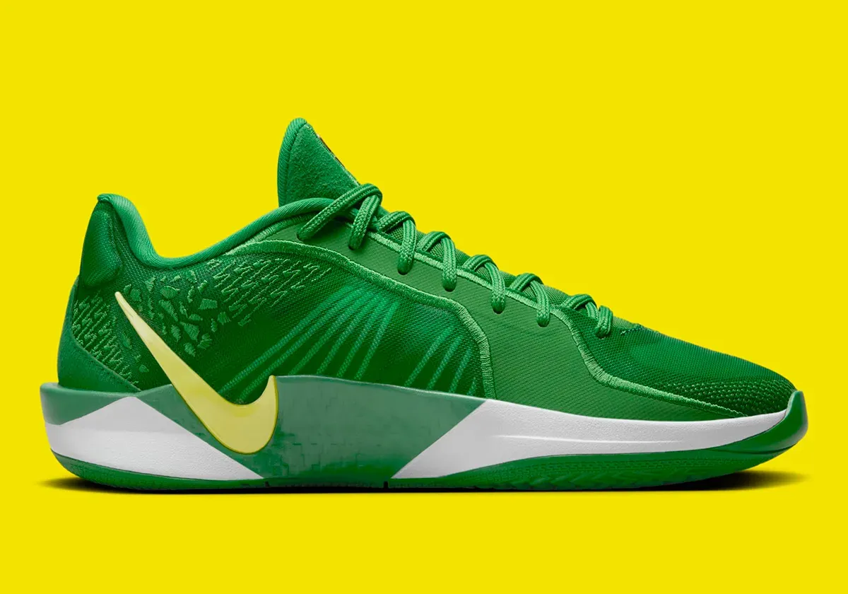 La tige est ornée de deux teintes de vert avec pour contraster le tout un « Swoosh » jaune sur l'empeigne et le logo « S » de la joueuse en doré sur la languette. L'ensemble correspond aux couleurs des Oregon Ducks, la fac de Sabrina Ionescu pendant quatre ans, de 2016 à 2020, avant d’intégrer la WNBA.