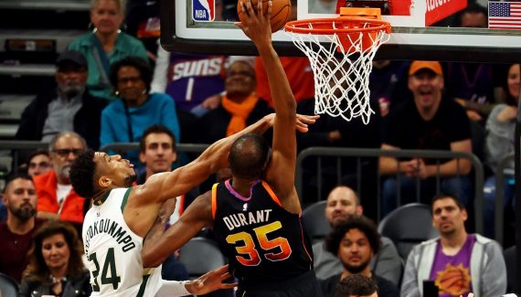 Lors de ses saisons à Brooklyn, Kevin Durant affichait de meilleures statistiques, en flirtant avec la barre des 30 points par match, mais, encore fragile physiquement après sa rupture du tendon d’Achille pendant les Finals 2019 face à Toronto, il ne jouait pas l’intégralité des saisons régulières.