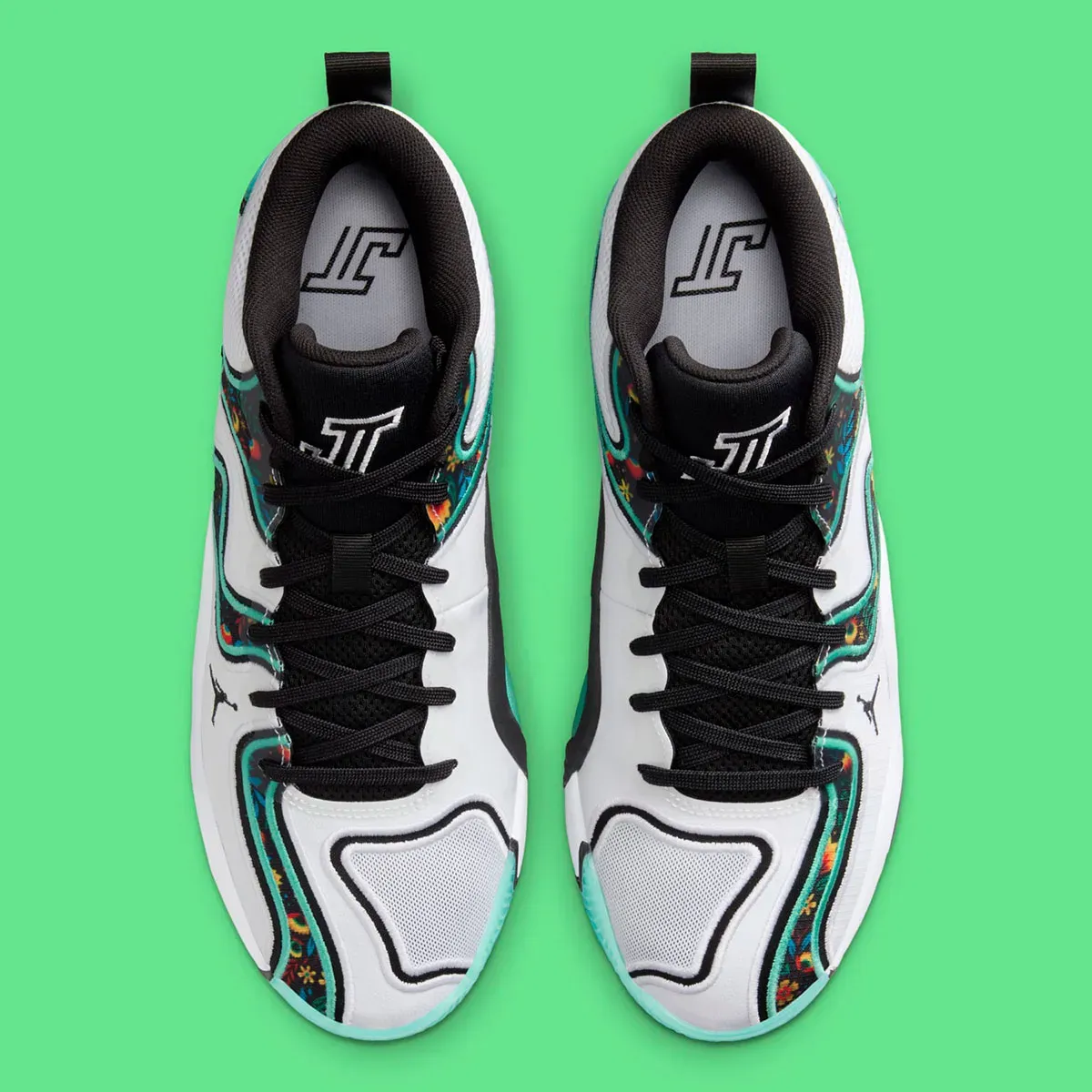 La tige blanche est ornée d’imprimés floraux en référence au jardin de Jayson Tatum et en clin d’œil à l’antre des Celtics, le TD Garden. Du noir, sur la languette et le col, ainsi que des parties en vert émeraude complètent l’ensemble. Le logo du joueur apparaît en blanc sur la languette. Niveau performance, la semelle est assortie d’une mousse en Cushlon 3.0 et d’un revêtement extérieur en caoutchouc translucide à chevrons, tandis qu’une unité Zoom Air complète le dispositif.