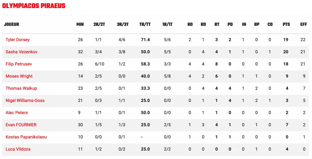 En attendant, il peut compter sur Sasha Vezenkov, décisif avec ses 20 points, et qui n'a pas eu besoin de trop de temps pour se réadapter au jeu européen. En face, Mathias Lessort frôle le double-double (11 points, 8 rebonds).