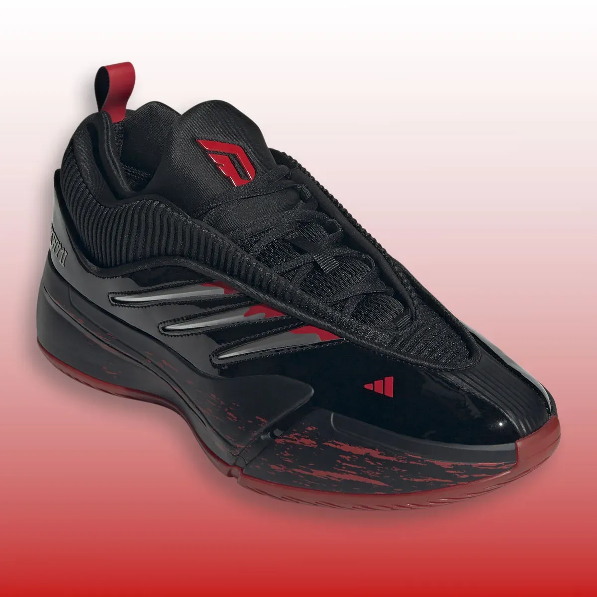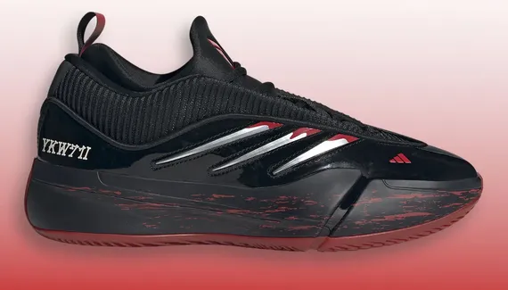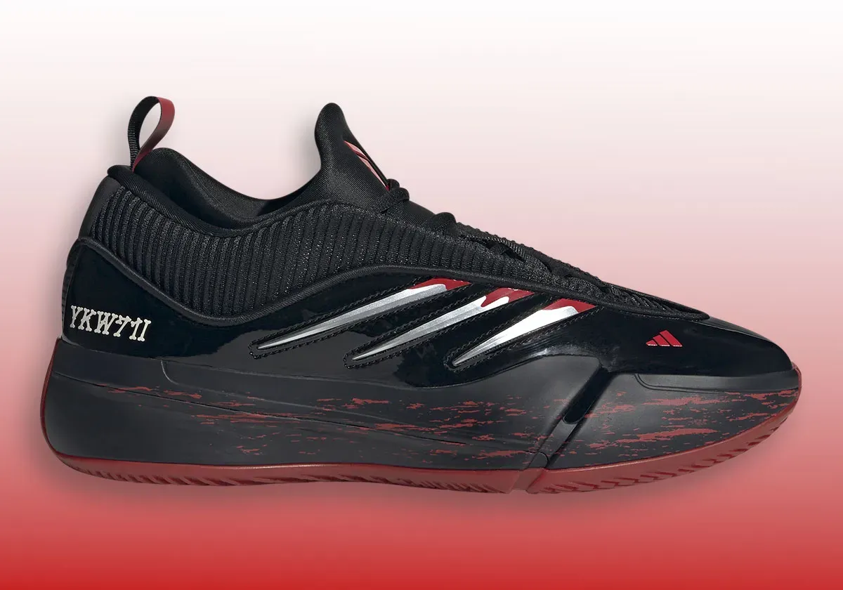 Cette nouvelle version de la neuvième chaussure signature de Damian Lillard se distingue en effet par sa tige ornée d'une base en cuir verni noir, complétée par une partie supérieure en mesh. Les trois bandes ressortant en gris sur l'empeigne sont dessinées en forme de lames et assorties d'un rouge sanglant. La semelle noire est également tachetée de rouge. On retrouve enfin le sigle « YKW71I » en blanc au niveau du talon, qui ferait notamment référence à son surnom “Dame Time” ainsi qu'à son match record à 71 points.