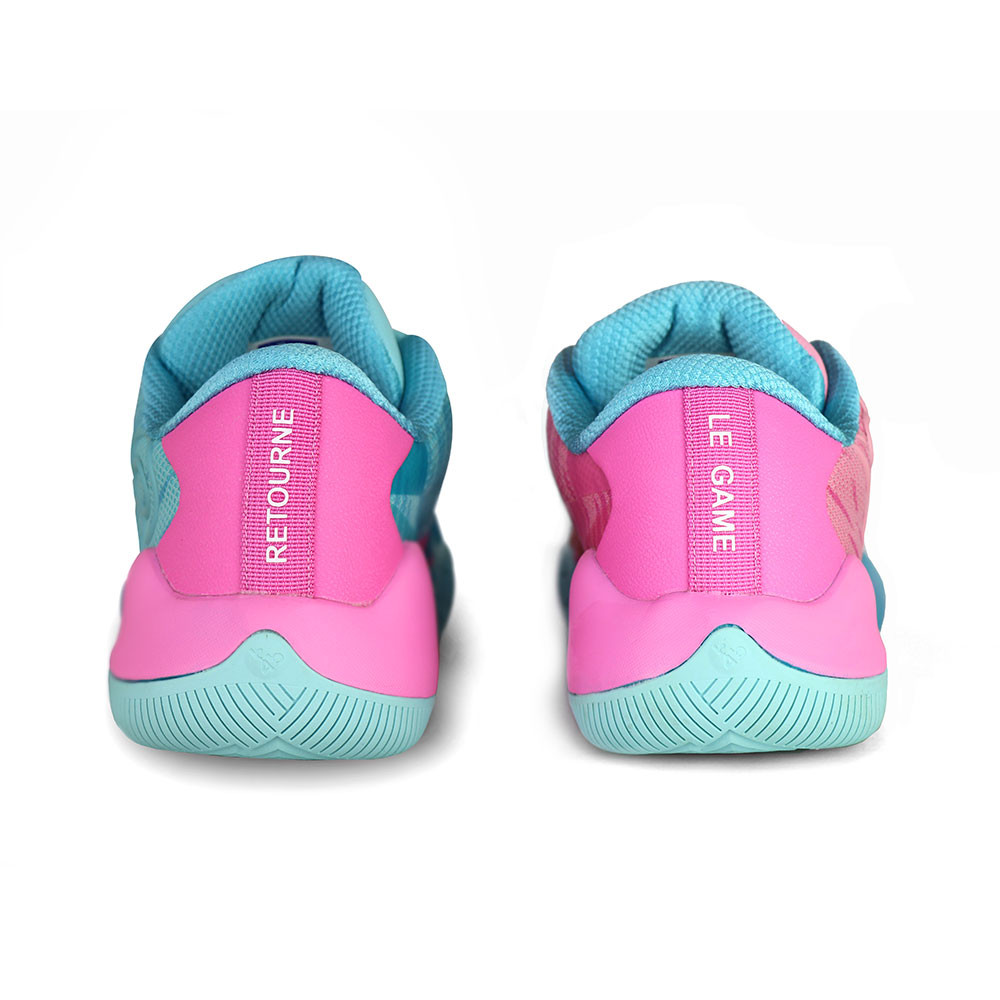 Mais ce qui fait la particularité de cette B4B Origins, c’est son choix de coloris « à composer ». Basket4Ballers propose en effet quatre couleurs dominantes, rose, violet, vert et bleu. C’est ensuite à chacun de piocher pour composer sa paire, avec un coloris uni ou dépareillé. Jusqu’à ce 16 combinaisons sont alors personnalisables. Une façon plutôt efficace de se démarquer de la concurrence.