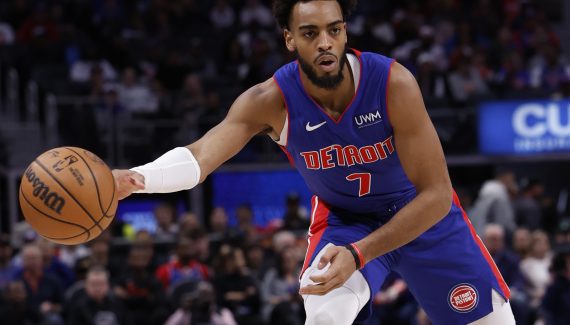| 2023-24 * | DET | 22 | 19 | 29.6 | 28.1 | 86.7 | 0.5 | 2.8 | 3.3 | 1.1 | 0.7 | 0.7 | 0.6 | 0.1 | 4.2 |