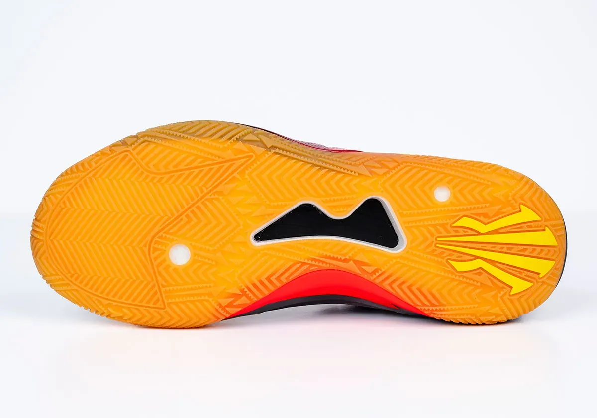 Après avoir confirmé la sortie pour le grand public du coloris « Chief Hélà », on reste sur le thème des racines amérindiennes du meneur des Mavs avec cette version « Speed Tribe ». Les motifs présents sur l'empeigne se présentent ici entre rouge, orange, gris et jaune, complétés par une partie supérieure en noir. Le logo du joueur ressort en jaune sur la languette. L'ensemble repose sur une semelle extérieure translucide jaune.