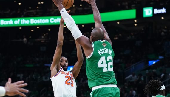 Néanmoins, la soirée de l’ancien des Suns n’a pas été difficile seulement en attaque. En défense aussi, il a souffert, beaucoup même. Chargé de s’occuper de Jayson Tatum, il s’est rapidement retrouvé pris dans les écrans, obligeant les Knicks à changer. Avec 37 points à 8/11 à 3-pts, le champion olympique s’est régalé. Puis, en confiance, il a inscrit quelques paniers sur la tête d’un Mikal Bridges dépassé.