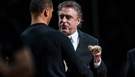« C’était l’un des éléments les plus importants de la soirée. J’ai dit aux gars d’être attentifs à l’équipe, mais aussi à la transmission venant de Cousy, Cedric Maxwell, Ray Allen, KG et Pierce », remarque le coach qui trouve sa bague de champion « trop grosse » pour pouvoir la porter.