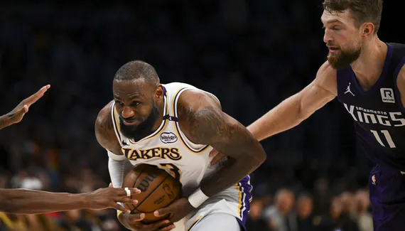 Si Anthony Davis signe un 3e match de suite à 30 points et plus, c'est bel et bien LeBron James qui lui vole la vedette dans cette victoire face aux Kings (131-127). À bientôt 40 ans, le meilleur marqueur de l'histoire de la NBA signe un énorme triple-double à 32 points, 14 rebonds et 10 passes, et surtout on retiendra cet incroyable passage au début du 4e quart-temps.