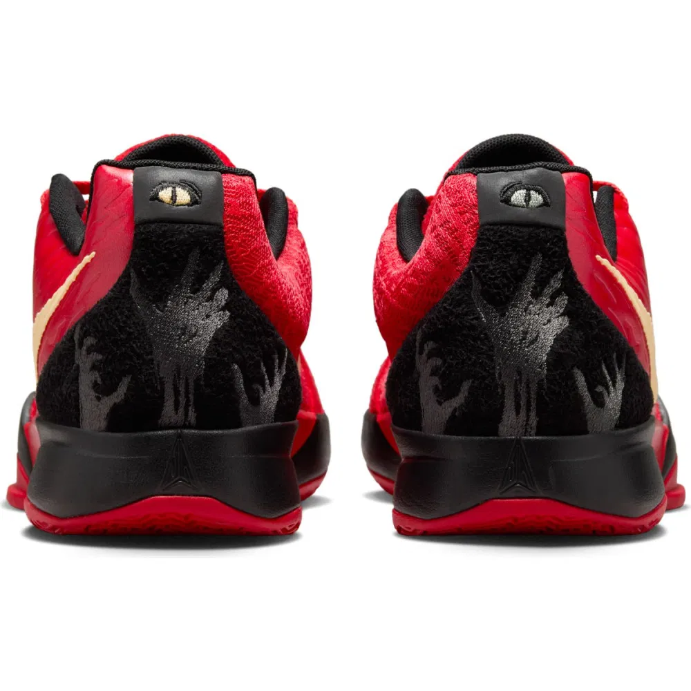 Pour être « dans le thème », c’est le coloris « Nightmare » qui a été choisi pour lancer la deuxième chaussure signature de Ja Morant, quelques jours avant Halloween. Le modèle flamboyant est habillé d’une tige en rouge vif marquée par un « Swoosh » doré. Le logo du joueur est également présent en doré sur la languette. Au niveau du design, on retrouve un ADN similaire à la Ja 1 même si la virgule n’a plus la même envergure.