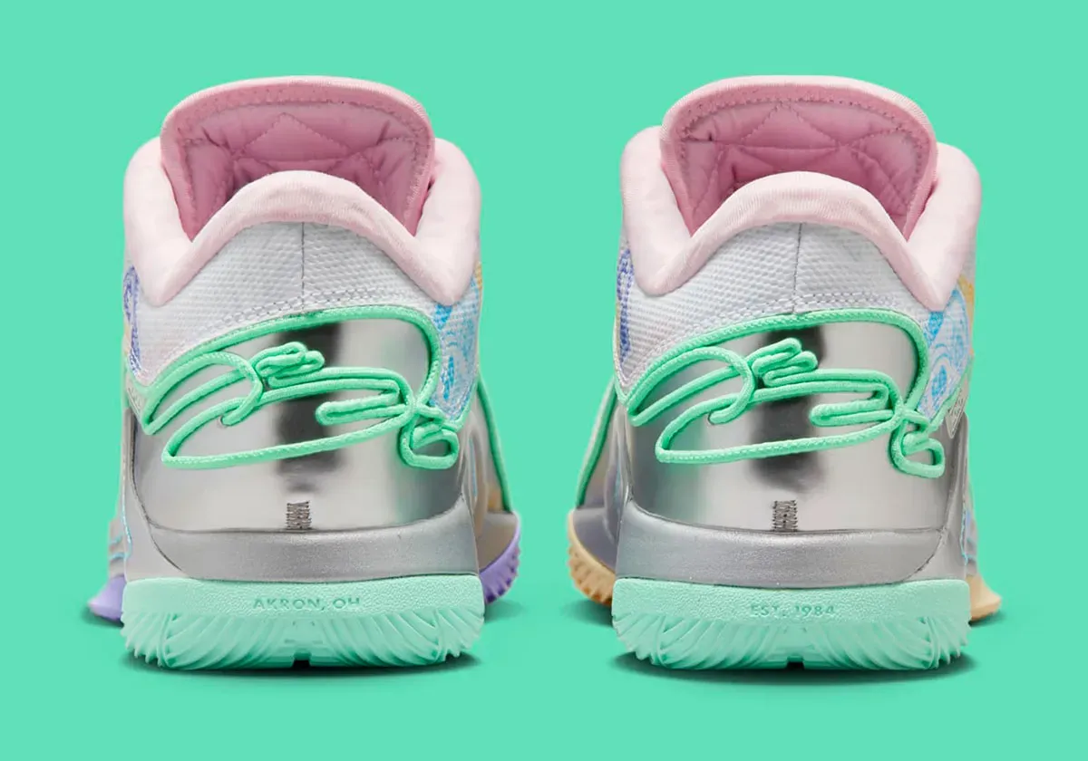 Porté en match par le King en personne ce week-end, ce coloris ne passera pas inaperçu, avec son col et sa languette en rose sur laquelle figure le logo du jeu. La tige est quant à elle habillée de faux billets du jeu. L'ensemble est complété par une base grise tandis avec notamment un « swoosh » bleu, tandis que la semelle apparaît en vert et violet. L'emballage et la boîte ont également été personnalisés aux couleurs du jeu Monopoly.