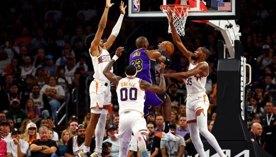 À leurs côtés, Devin Booker, Ryan Dunn et Royce O’Neal pour compléter le cinq. Cet alignement de petite taille, sans pivot donc, alors que Jaxson Hayes était encore en place en face, avant d’être remplacé par Anthony Davis, a gêné les Lakers la nuit passée.