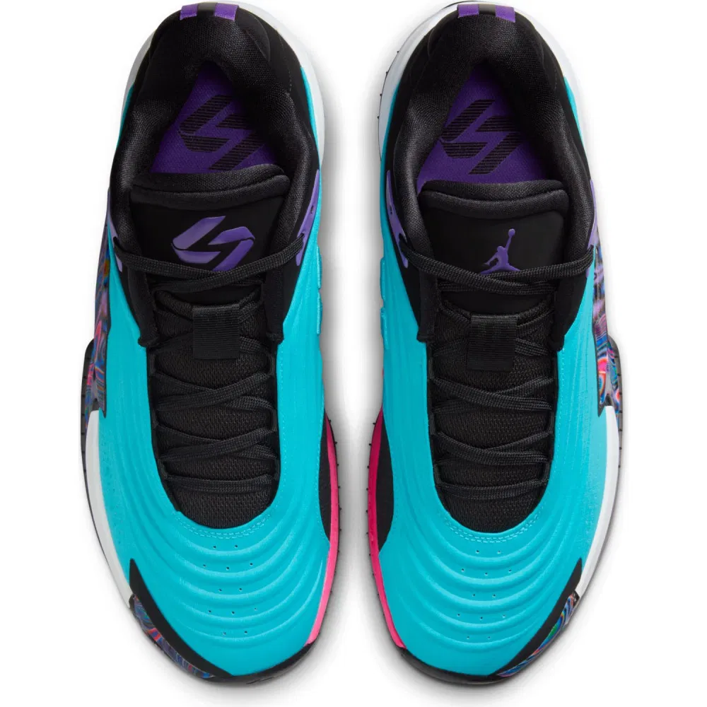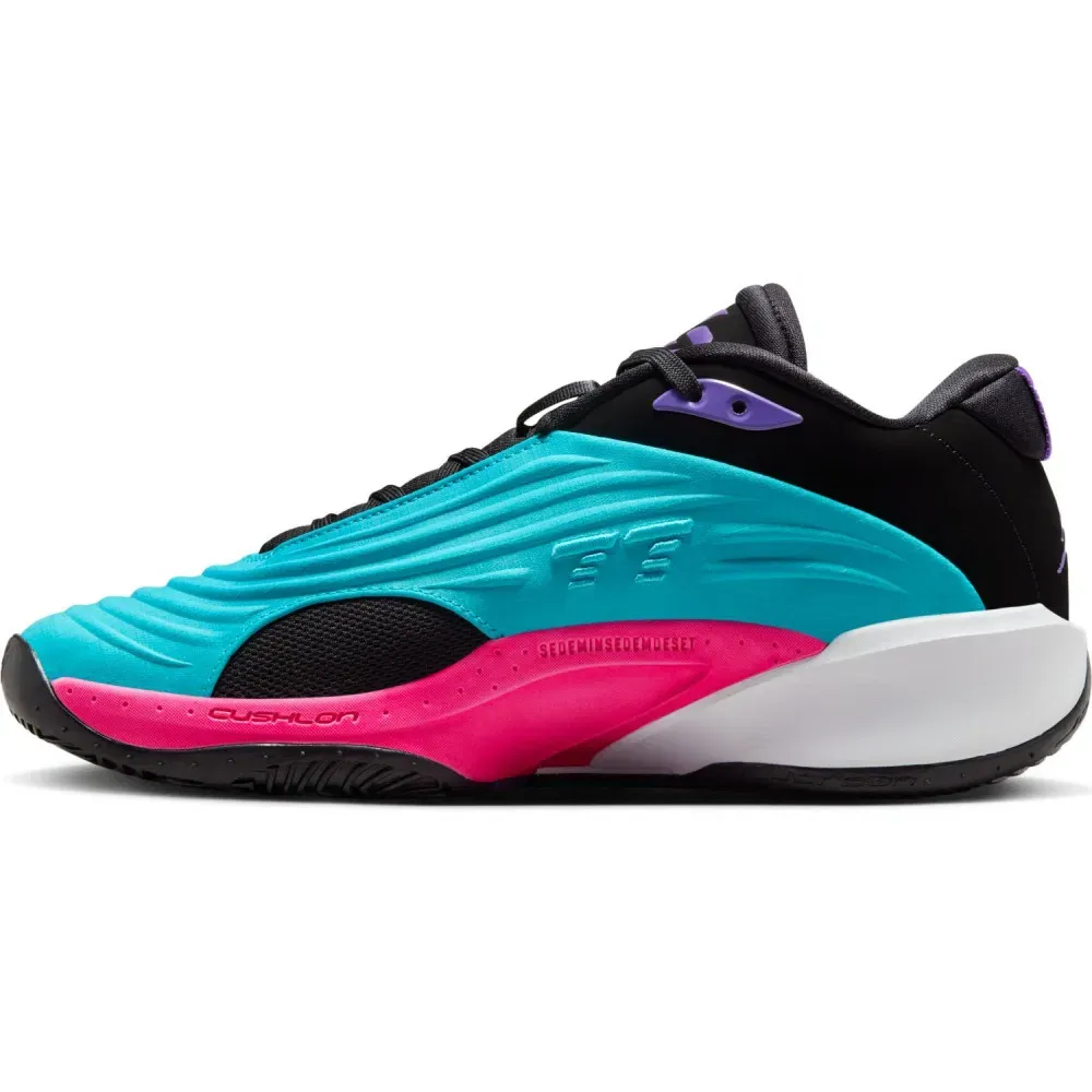 Au niveau technique, la paire a été conçue pour mettre en valeur l’accélération et la maîtrise à pleine vitesse, avec de fines plaques en TPU pour garantir le maintien du pied et la légèreté de la paire et une mousse intermédiaire en Cushlon 3.0 (qui remplace la « Formula 23 » de la Jordan Luka 2, mais dont l’effet sera probablement équivalent). La semelle extérieure en caoutchouc est quant à elle composée de chevrons similaires à ceux des pneus d’une voiture.