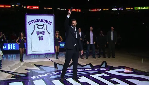 Retraité des parquets depuis 2011, après avoir remporté une bague de passage chez les Mavs pour ce qui s’est avéré être sa tournée d’adieux, Peja Stojakovic est désormais un papa de prospect NBA à temps plein, alors que son garçon Andrej se prépare à son tour à lancer sa carrière pro, lui qui évolue actuellement à la fac de California.