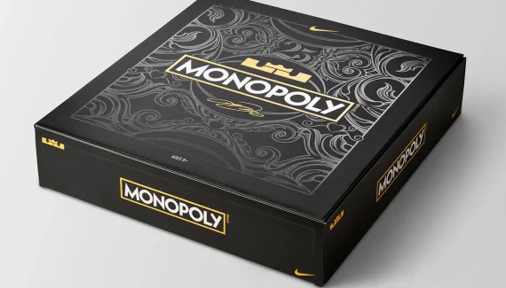 Mais la collaboration pourrait ne pas s’arrêter là puisque des images d’un jeu Monopoly reconfiguré autour de LeBron James viennent d’être dévoilées ! Les différents pions ont été remplacés par une chaussure, une bague de champion, un lion ou encore un ballon de basket et le plateau a lui aussi été complètement revu. Les habituelles gares ont été remplacées par les quatre titre de champions NBA décrochés par LeBron James en carrière…