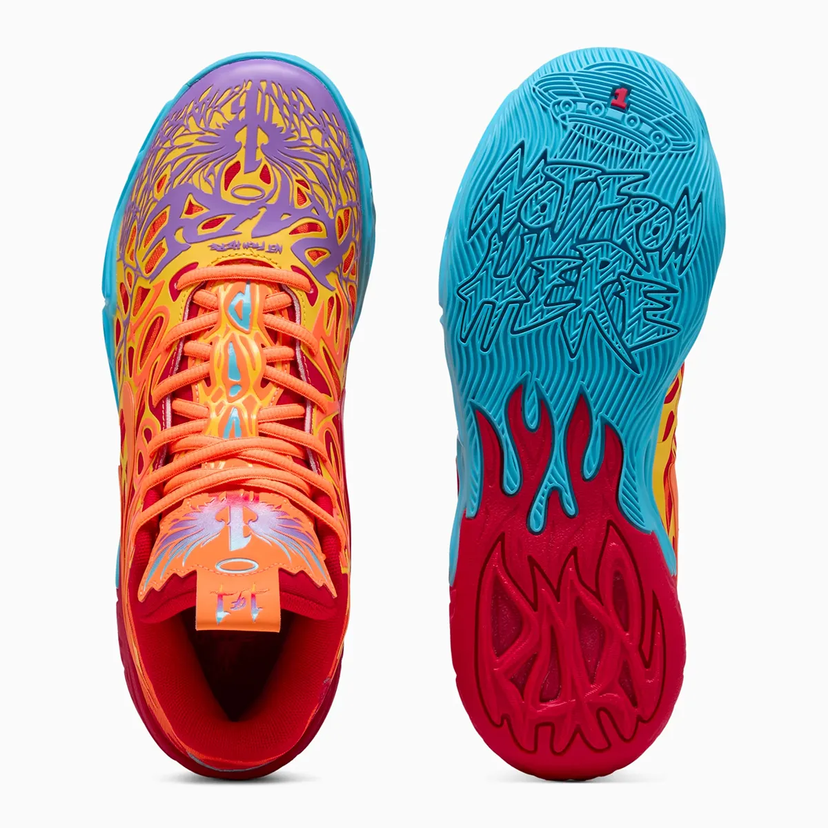 Non, LaMelo Ball ne s’est pas levé un beau matin en se décidant à déclarer sa flamme pour les Suns de Phoenix. Ce nouveau coloris « Phoenix » est en fait l’une de ses marques de fabrique puisque le Phénix fait partie des motifs qui habillent ses chaussures signatures depuis le début de la collection « MB » avec Puma.