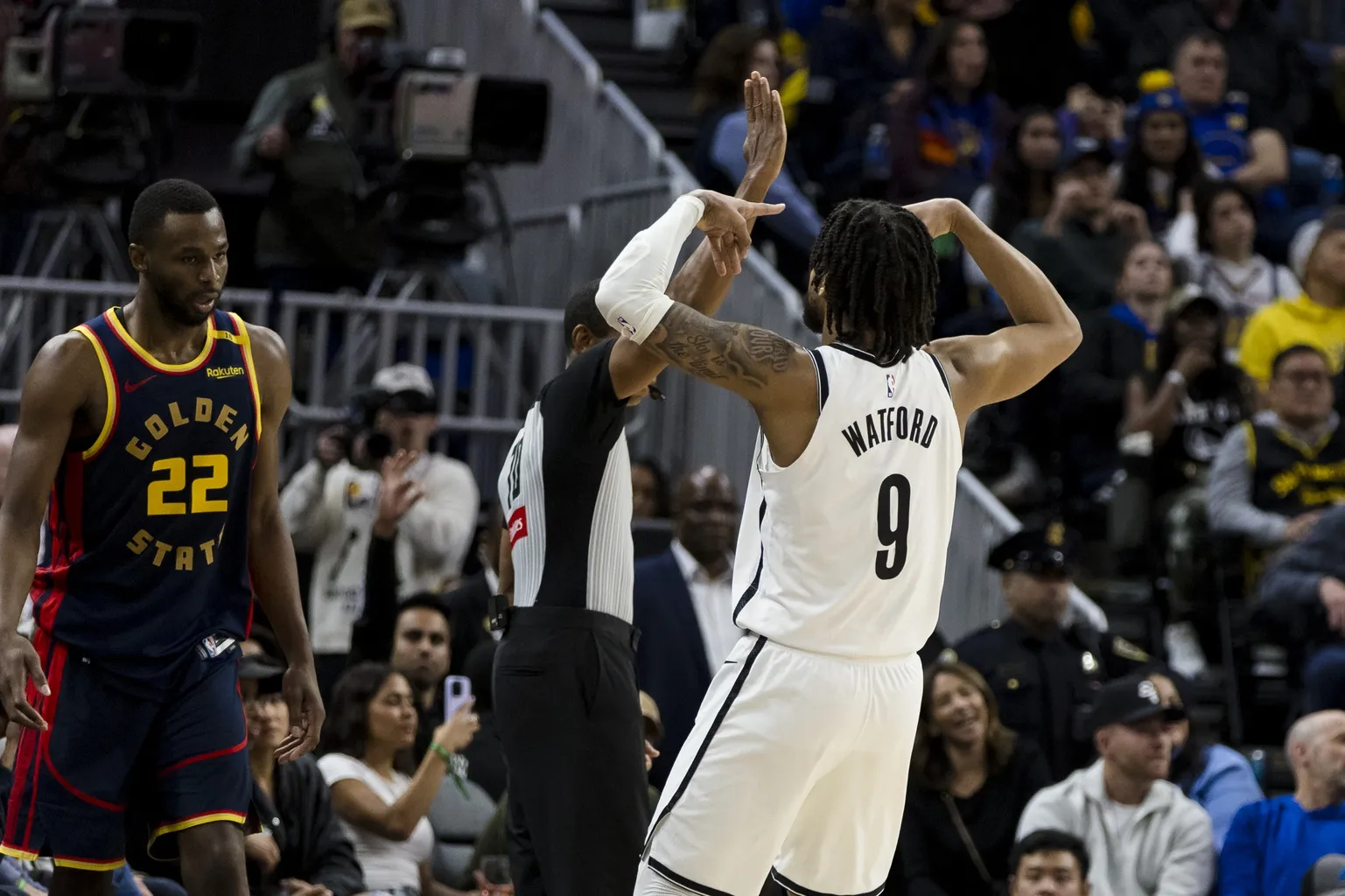 Huit points de Stephen Curry relancent la machine mais la défense de Golden State ne parvient pas à ralentir les Nets. Dennis Schröder, Trenton Watford et Ziaire Williams enfoncent le clou alors qu'Andrew Wiggins (18 points) manque un lay-up et que Draymond Green rate trois de ses quatre lancers-francs (119-110). Avec une minute à jouer, c'est Trenton Watford qui vient crucifier les Warriors d'un 3-points, le 20e de la rencontre pour Brooklyn !