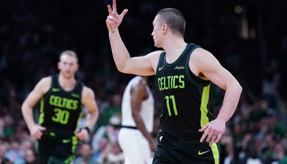 Sur le plan du jeu, les hommes de Joe Mazzulla n’ont pourtant rien fait de fou, mais en exploitant rapidement les bons décalages, ils ont converti 17 de leurs 24 tirs en 12 minutes, à 12 sur 17 derrière la ligne à 3-points. Dans le détail, ça donne 4/4 pour Derrick White, 3/4 pour Jaylen Brown, 3/5 pour Payton Pritchard, 1/3 pour Jrue Holiday et 1/1 pour Sam Hauser. De quoi s’offrir la deuxième meilleure marque sur un quart-temps de l’histoire, avec 51 points inscrits, derrière les 55 points des Warriors et des Grizzlies…