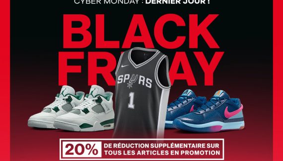 Basket4ballers, le numéro 1 français de la distribution d’articles liés à la pratique du basketball, boucle ses offres Black Friday avec le traditionnel Cyber Monday. Ce 2 décembre 2023, en plus de nombreuses promotions pouvant aller jusqu’à -50%, vous pourrez économiser 20% supplémentaire, valable sur tous les articles en promotion.