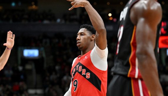 Notre petit doigt nous dit qu’il se plaît beaucoup à affronter le Heat. Titulaire de son record en carrière face à cette même formation floridienne (46 points en 2022), RJ Barrett s’est offert une nouvelle belle explosion offensive cette nuit. Avec un niveau d’efficacité exceptionnel : 37 points à 15/20 aux tirs !