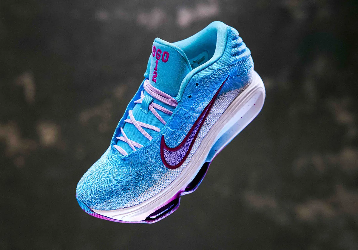La paire en question est donc renommée la Paige Bueckers Nike Zoom GT Hustle 3, et se compose d’une tige en “FlyKnit” oscillant du bleu clair au blanc. flanquée d’un “Swoosh” en violet avec des contours bordeaux. Les logos présents sur la languette, comme le motif “Paige Buckets” sur la chaussure droite, ressortent en rose, qu’on retrouve également sous forme de dégradé sur la semelle extérieure pour accompagner une semelle intermédiaire blanche tachetée.