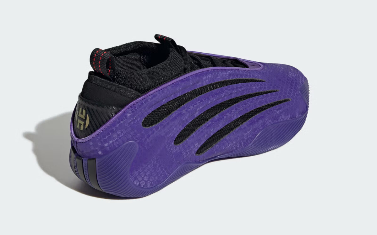 Pour ce premier coloris, la tige en violet est habillée d’un motif “peau de serpent” très réussi. L’ensemble est complété par des touches de noir et de rouge. La Harden Vol. 9 ne dispose pas encore d’une date de sortie officielle. Son prix devrait avoisiner les 160 dollars.