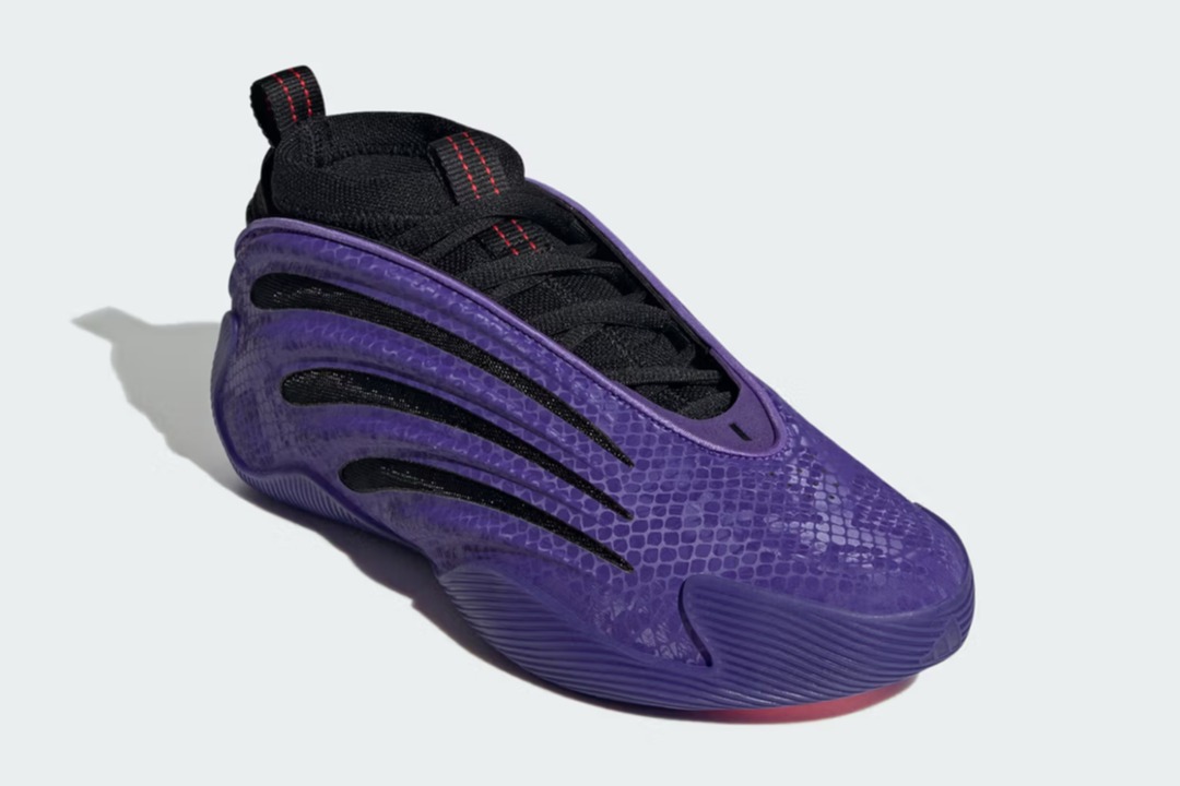 Pour ce premier coloris, la tige en violet est habillée d’un motif “peau de serpent” très réussi. L’ensemble est complété par des touches de noir et de rouge. La Harden Vol. 9 ne dispose pas encore d’une date de sortie officielle. Son prix devrait avoisiner les 160 dollars.