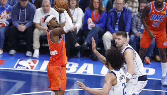 Une fois ces deux séries passées, la rencontre s’équilibre. Les Texans perdent beaucoup de ballons quand Shai Gilgeous-Alexander domine et enchaîne les paniers. Oklahoma City vire donc en tête (32-24). Les hommes de Mark Daigneault sont particulièrement gourmands à 3-pts : ça dégaine de partout et beaucoup. Le deuxième quart-temps ressemble parfois à un concours de shoots. Pris très haut, Luka Doncic sert ses coéquipiers, la circulation se fait correctement et les Texans ont des tirs primés dans les coins. Rien n’est fait à la pause (57-54).