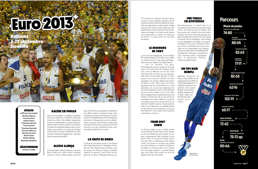Les Équipes de France, ce sont aussi des fratries et des familles comme les Risacher et les Rupert aujourd’hui, ou les Monclar et les Beugnot hier. Comme « Le plus grand livre de basketball de tous les temps (selon TrashTalk) », « L’équipe de France de basketball (selon TrashTalk) : la grande histoire » est à la fois bien écrit, documenté et illustré. C’est riche et instructif, avec juste assez de chiffres, mais en revanche, beaucoup de photos rares et ça permet d’ailleurs de rendre un grand coup de chapeau à tous les historiens et historiennes du basket français. Cet ouvrage est le plus bel hommage qui soit à leurs inlassables travaux.