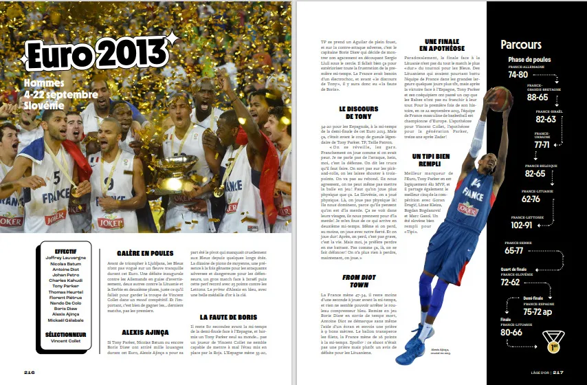 Comment raconter l'histoire des Équipes de France de basket ? Comment passer de l'incroyable destin de Jacques Flouret, pionnier des années 30, à Victor Wembanyama, l'alien des Spurs, médaillé d'argent à Paris ? Chez nos confrères de TrashTalk, on n'a pas choisi de frise chronologique, mais plutôt de suivre les dribbles des Bleus et des Bleues à travers les hauts et les bas d'une histoire complexe et passionnante.