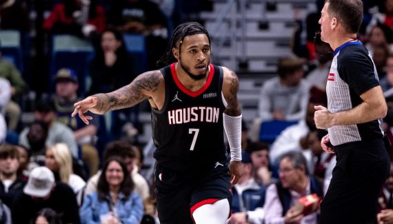 Alors qu’il a passé plus de temps en G-League que dans la Grande Ligue ces dernières semaines, l’ailier donne le maximum pour s’installer durablement dans les rotations texanes. Cette nuit, il a profité des absences de Dillon Brooks et Tari Eason pour bénéficier de son plus gros de temps de jeu de la saison.