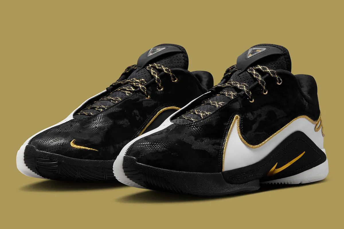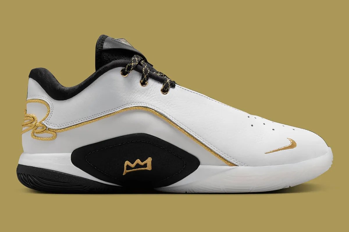 Le modèle s’est encore distingué en étant assorti de coloris marquants comme sa collaboration inattendue avec le jeu de société « Monopoly ». Pour 2025, ce coloris « Mogul » pourrait bien illuminer le mois de janvier avec cette fois un clin d’œil à son ancienne émission « The Shop », en reprenant les couleurs du décor, avec du noir et blanc et des finitions en doré, pour faire ressortir les lacets, les « Swoosh » et dessiner les contours de la virgule figurant sur l’empeigne.