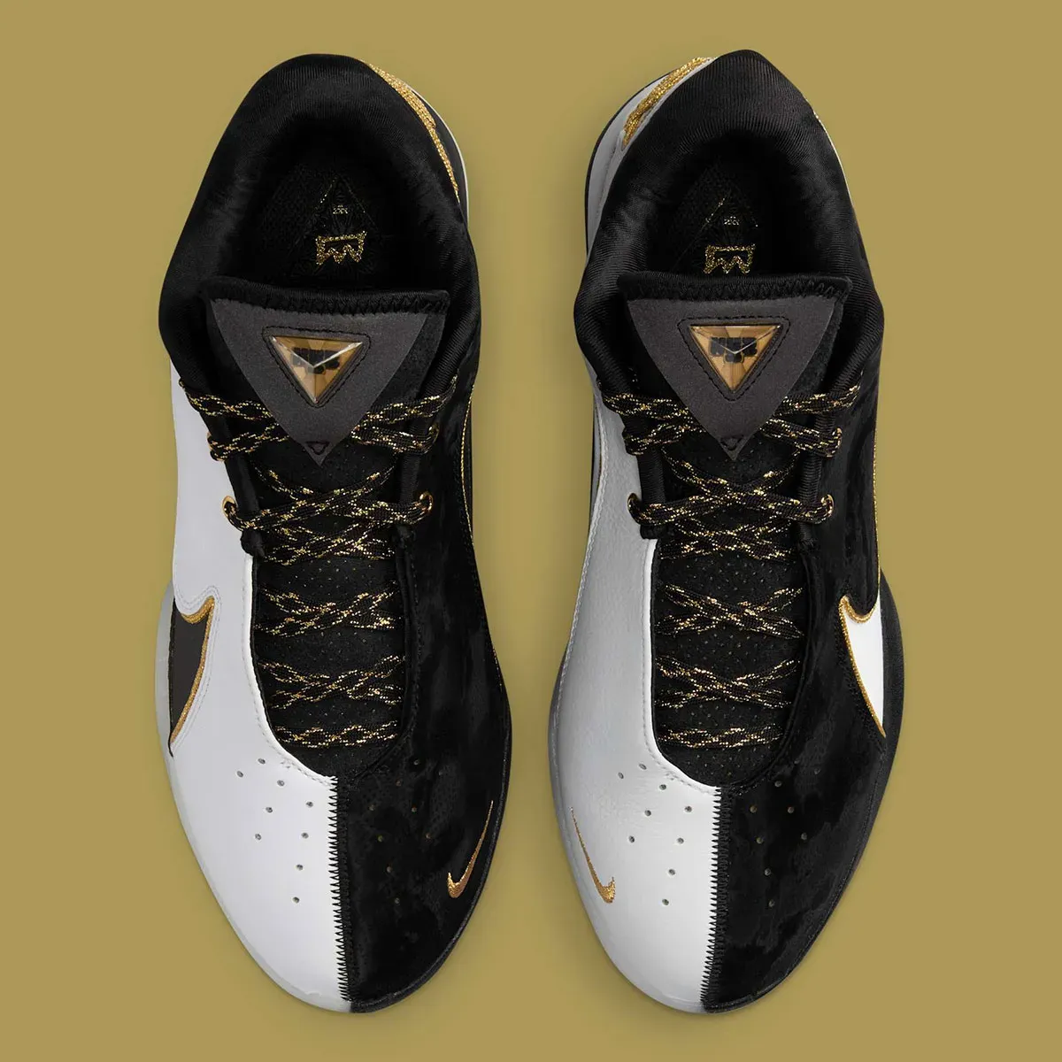 Le modèle s'est encore distingué en étant assorti de coloris marquants comme sa collaboration inattendue avec le jeu de société « Monopoly ». Pour 2025, ce coloris « Mogul » pourrait bien illuminer le mois de janvier avec cette fois un clin d’œil à son ancienne émission « The Shop », en reprenant les couleurs du décor, avec du noir et blanc et des finitions en doré, pour faire ressortir les lacets, les « Swoosh » et dessiner les contours de la virgule figurant sur l'empeigne.