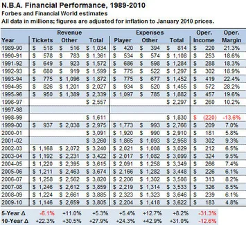 Pour 2011, on ne connaît pas encore les chiffres. En revanche, ce soir, le New York Times dévoile un tableau qui prouve que la NBA se porte bien, et depuis des années.