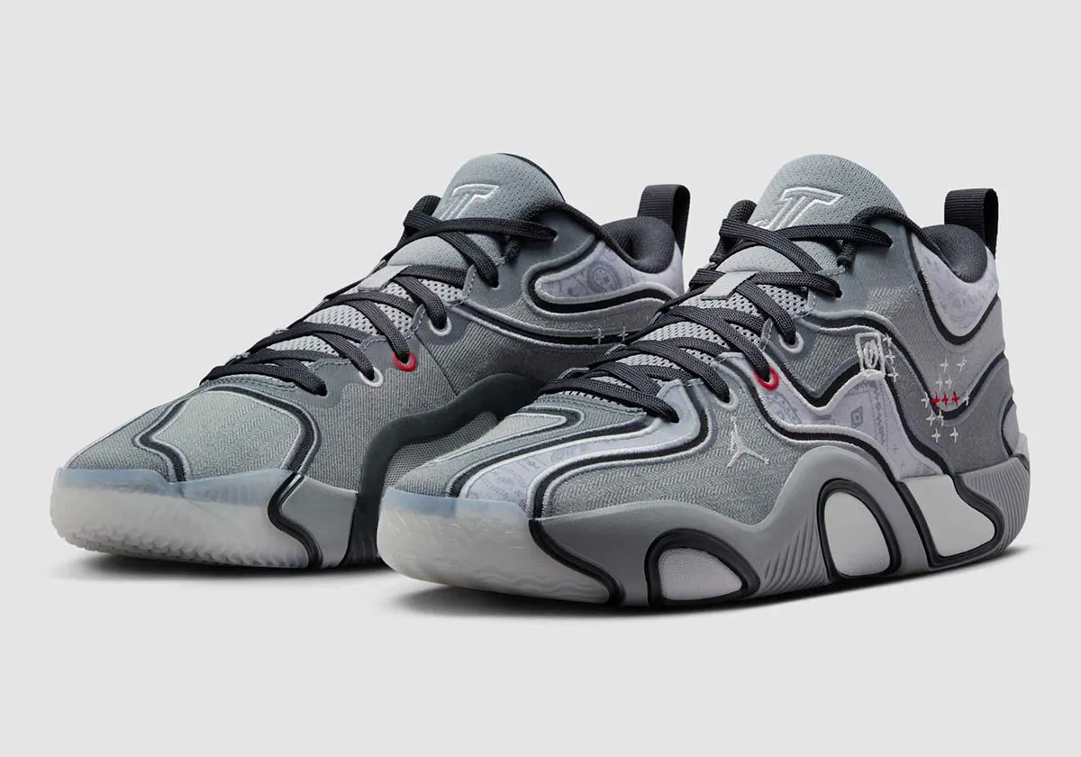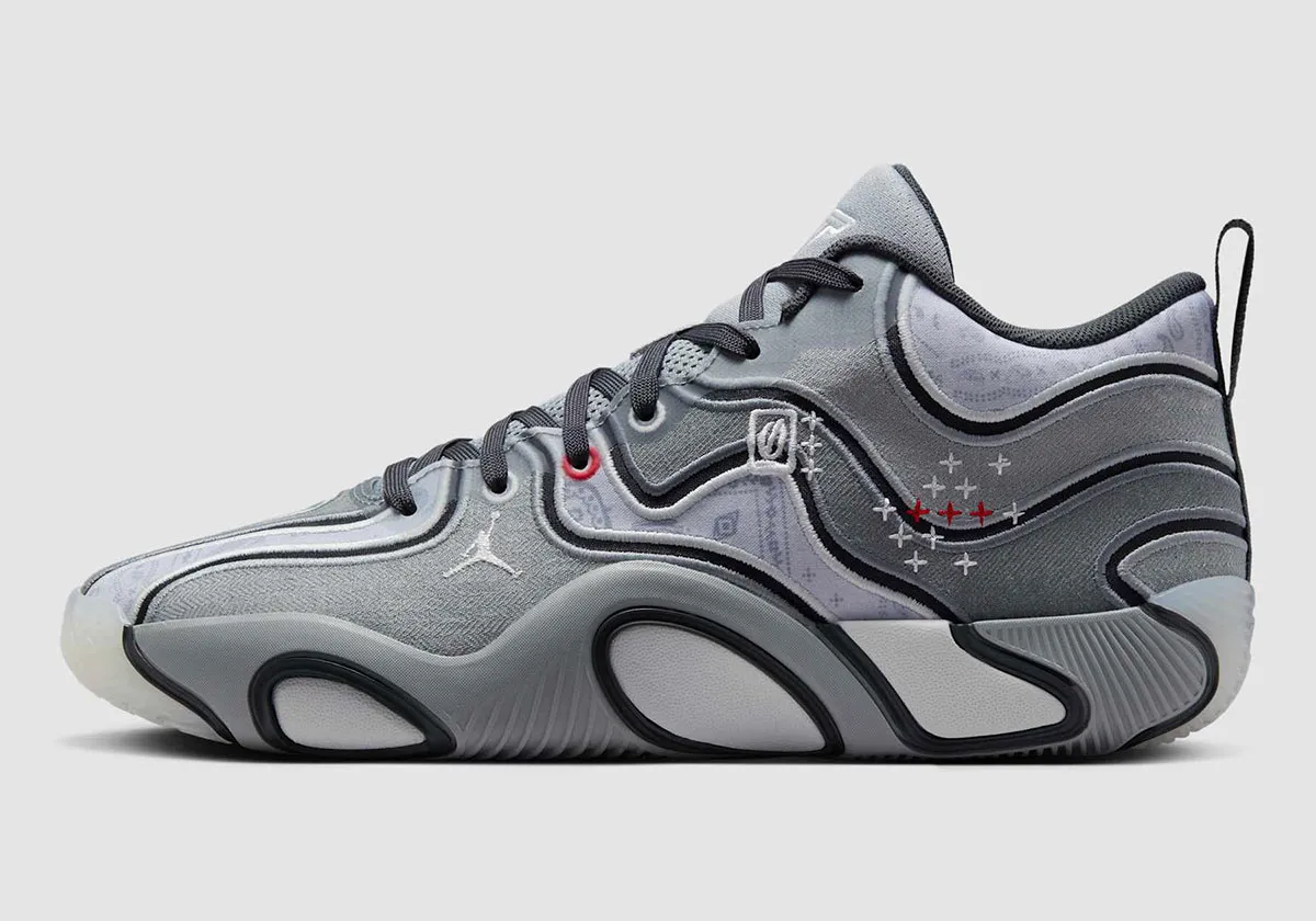 Après le coloris « Zen » de la Jordan Tatum 3, Jordan Brand reste dans le gris pour habiller la troisième chaussure signature de Jayson Tatum avec cette version « Boro Stitching », qui comme son nom l’indique, est le fait d’assembler et retravailler différents textiles.