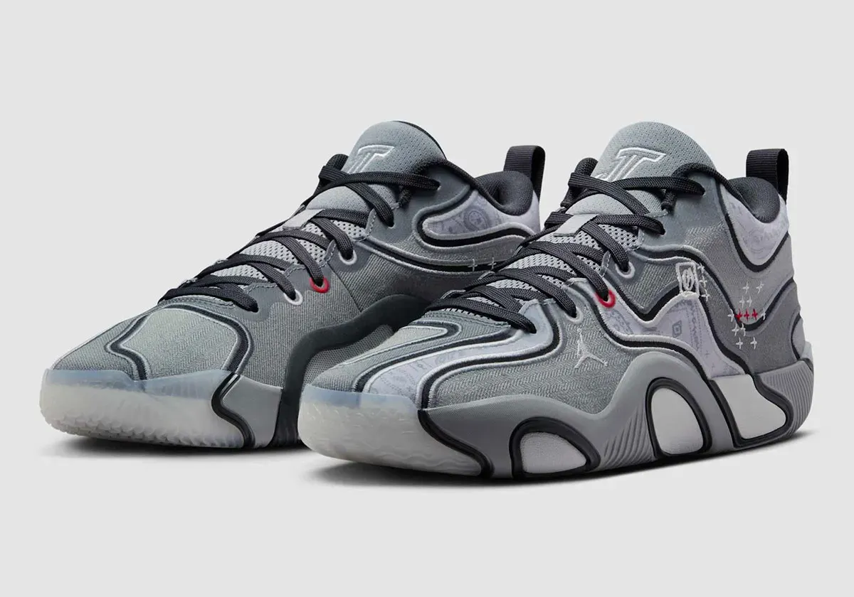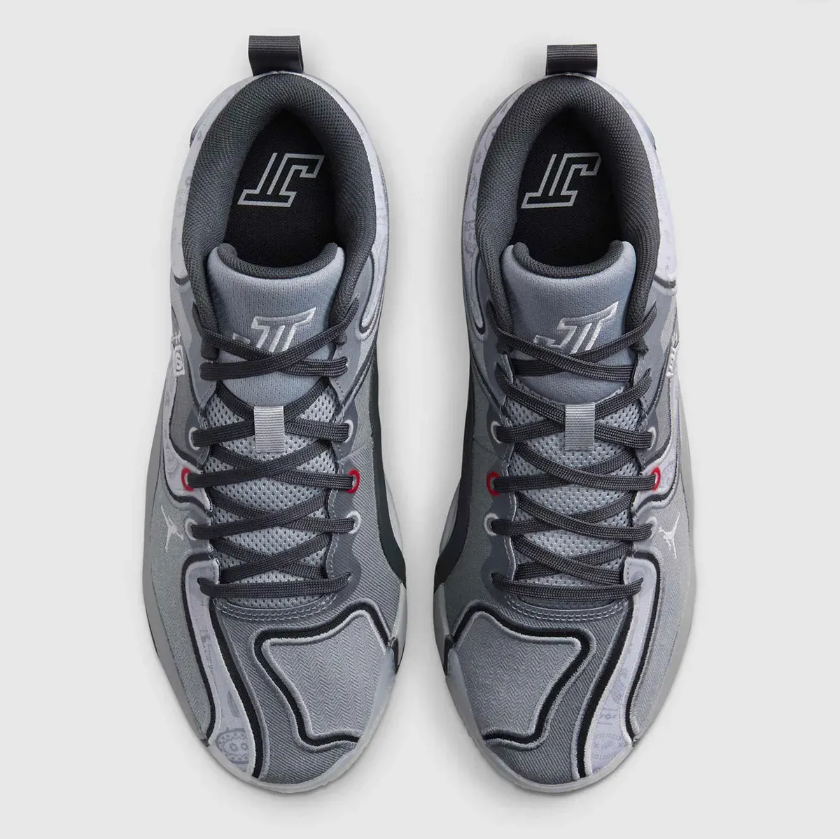 Après le coloris « Zen » de la Jordan Tatum 3, Jordan Brand reste dans le gris pour habiller la troisième chaussure signature de Jayson Tatum avec cette version « Boro Stitching », qui comme son nom l'indique, est le fait d'assembler et retravailler différents textiles.