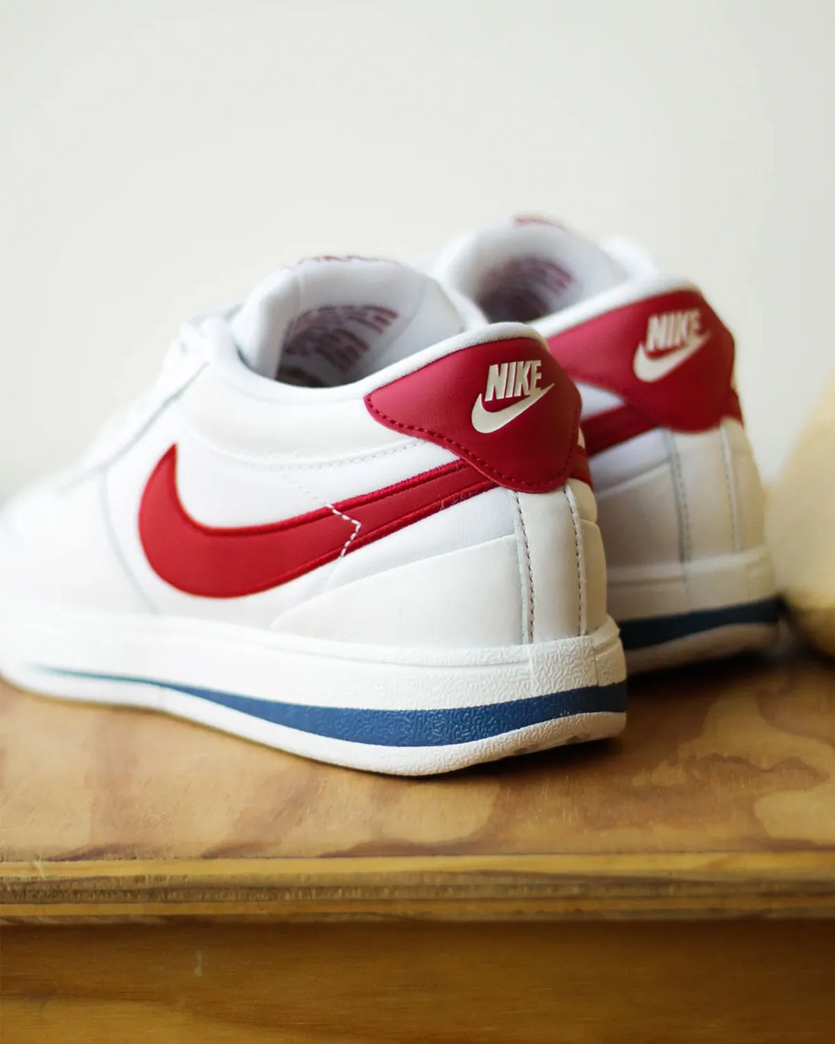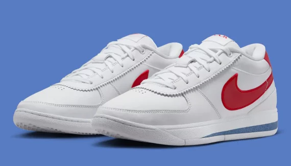 La première sera la version « Forrest Gump » reprenant les couleurs de la Nike Cortez du même nom qui va être mise à la vente. Comme dans la paire iconique du film, on retrouve une tige d’un blanc éclatant contrastée par des finitions en rouge sur le « Swoosh », sur la languette ou le talon, avec une bande bleue au niveau intermédiaire de la semelle.