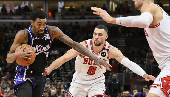 Les deux équipes rentrent dans le dernier quart-temps avec une seule possession d’écart mais dans ce chassé-croisé, les Kings ont plus d’armes, avec DeMar DeRozan et De’Aaron Fox, alors que Zach LaVine est esseulé en face. Ce dernier s’arrache pour permettre à son équipe d’y croire… jusqu’à cette violation des cinq secondes qui enterre les Bulls dans le “money-time” et permet aux joueurs de Doug Christie d’enchaîner une septième victoire (124-119).