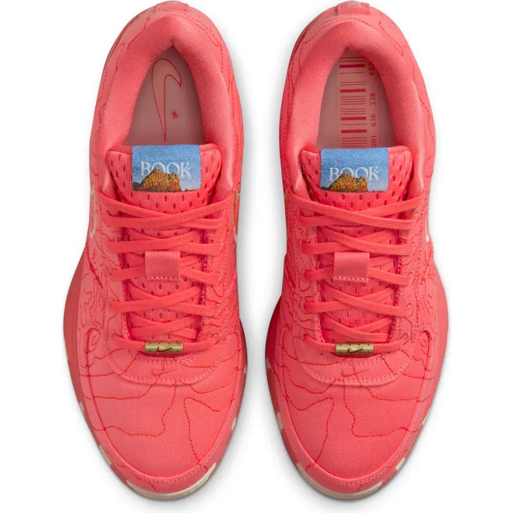 Devin Booker ne manque pas d'inspiration pour décliner sa première chaussure signature de toutes les couleurs. Après la “sobre et efficace” Book 1 “Forrest Gump”, c'est un retour aux fondamentaux cette fois avec ce coloris “Sedona” en hommage à la ville touristique de l'état d'Arizona, où l'arrière évolue depuis 2015. En l'occurrence, Sedona est connu pour ses montagnes de roches couleur rouge-ocre, offrant un paysage typique parmi les nombreux sites naturels qu'on peut trouver en Arizona.