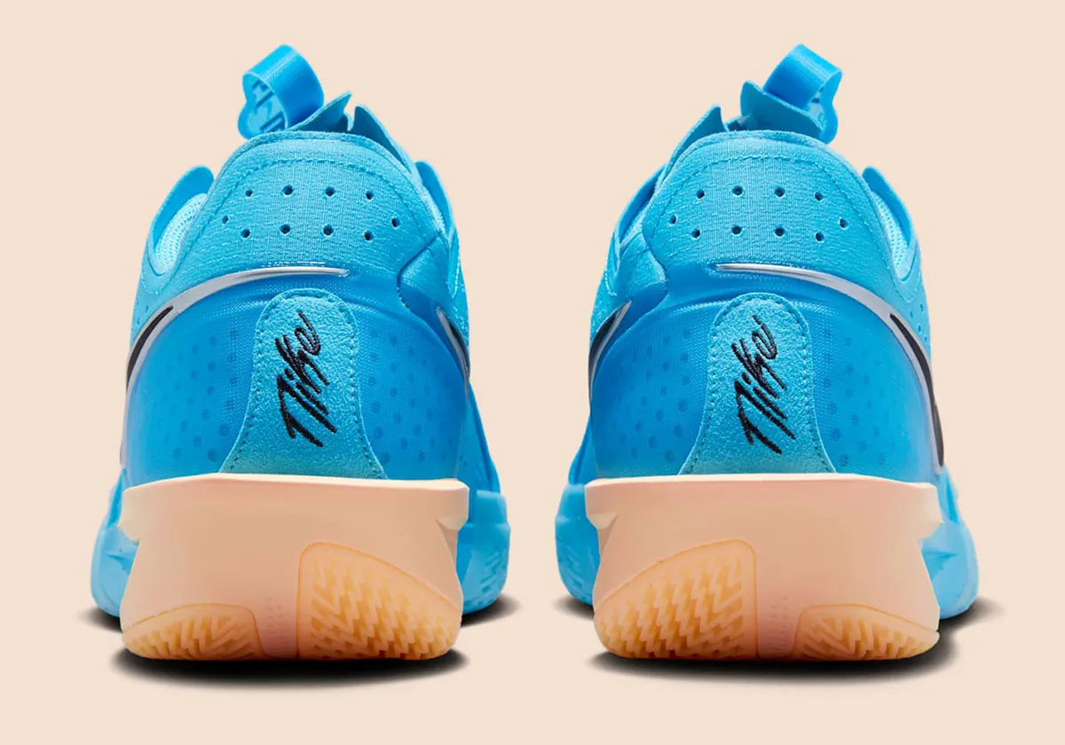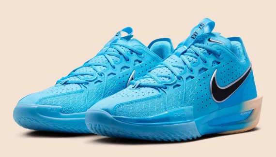 En 2025, la Nike GT Cut 3 s’est déjà déclinée en trois coloris, avec la “Punch”, la “Year of The Snake” et donc cette “Blue Fury”. La tige et la semelle sont principalement en bleu ciel, avec pour seuls compléments un “Swoosh” noir et gris sur l’empeigne, des inscriptions en noir sur la languette et le talon, ainsi qu’une touche de blanc nacré sous forme de dégradé pour donner un effet de vitesse sur la base arrière de la semelle.