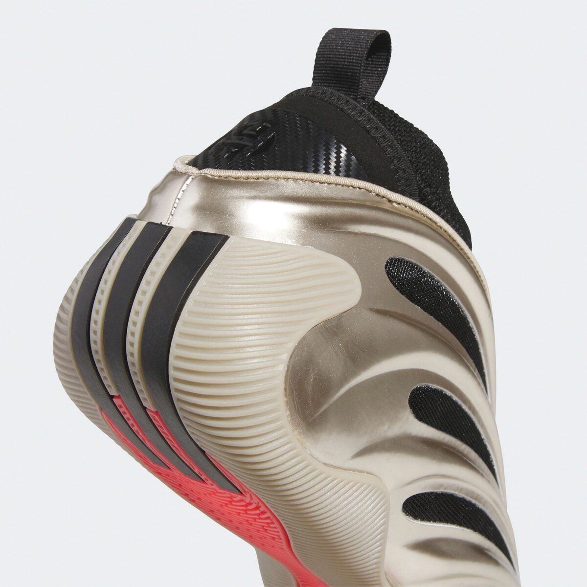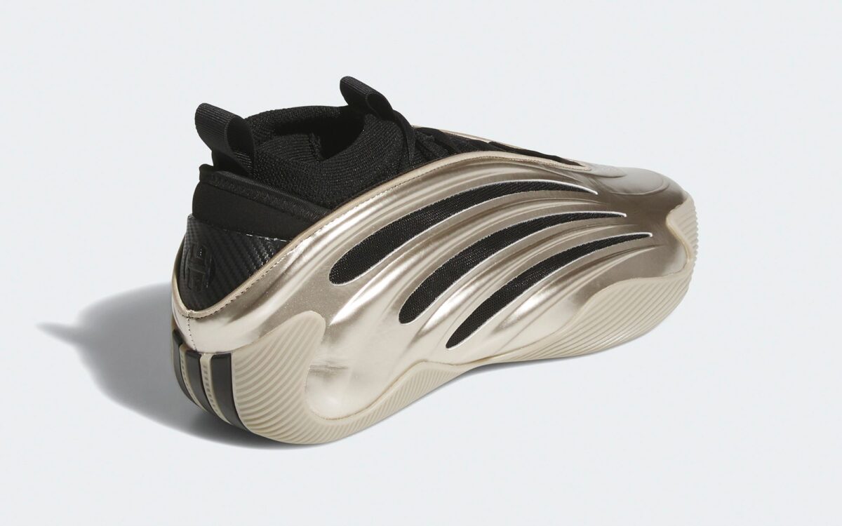 Un peu sur le même principe que l’année précédente, on distingue cette fois une « cage » latérale ici couleur métallique recouvrant la tige assortie de trois fines bandes. Dans un style à la « Yeezy », il préserve aussi le col chaussant qui a fait la spécificité de la Harden Vol.8. On retrouvera également un amorti « Boost » et de la mousse « Lighstrike », marques de fabrique de la ligne signature du Clipper, pour composer la semelle intermédiaire.