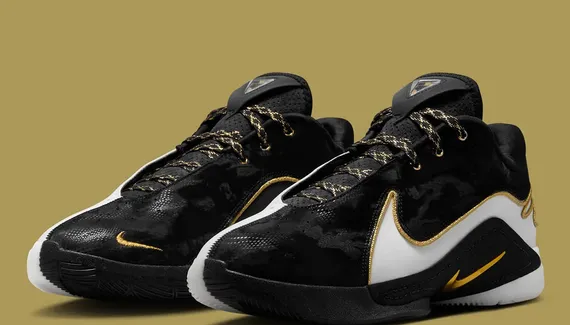 Le modèle s’est encore distingué en proposant à nouveau une gamme de coloris marquants comme sa collaboration inattendue avec le jeu de société « Monopoly » ou sa magnifique “Christmas Limelight”. Pour 2025, ce coloris « Mogul » pourrait bien illuminer le mois de janvier avec cette fois un clin d’œil à son ancienne émission « The Shop », en reprenant les couleurs du décor, avec du noir et blanc et des finitions en doré, pour faire ressortir les lacets, les « Swoosh » et dessiner les contours de la virgule figurant sur l’empeigne, et de sa signature sur le talon.