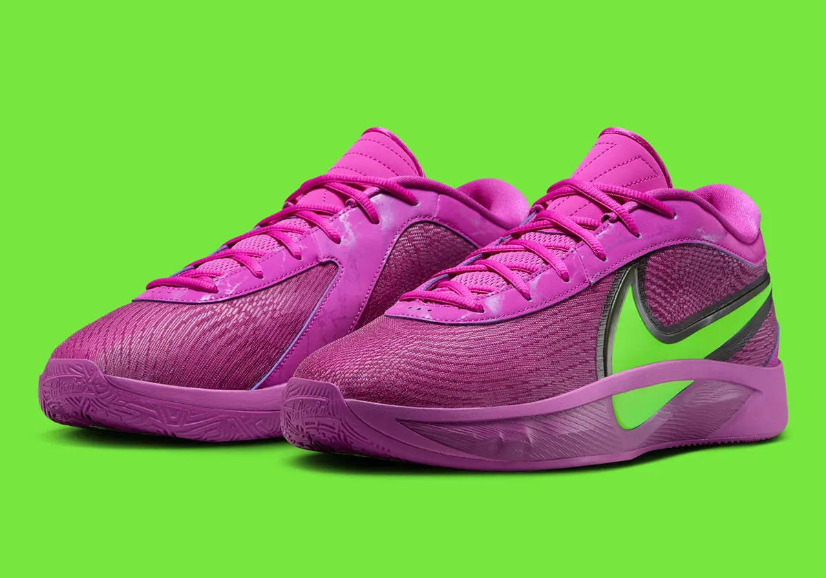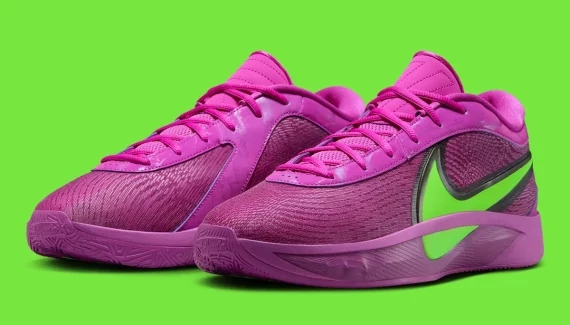 Ce violet utilisé pour la tige contrastée par un gros “Swoosh” en vert clair et aux contours en noir n’est en effet pas sans rappeler les couleurs des maillots des Bucks portés à la fin des années 2000 avant de pencher vers des tons plus sombres, que la franchise a honoré jusqu’en 2006 avant de revoir sa copie.