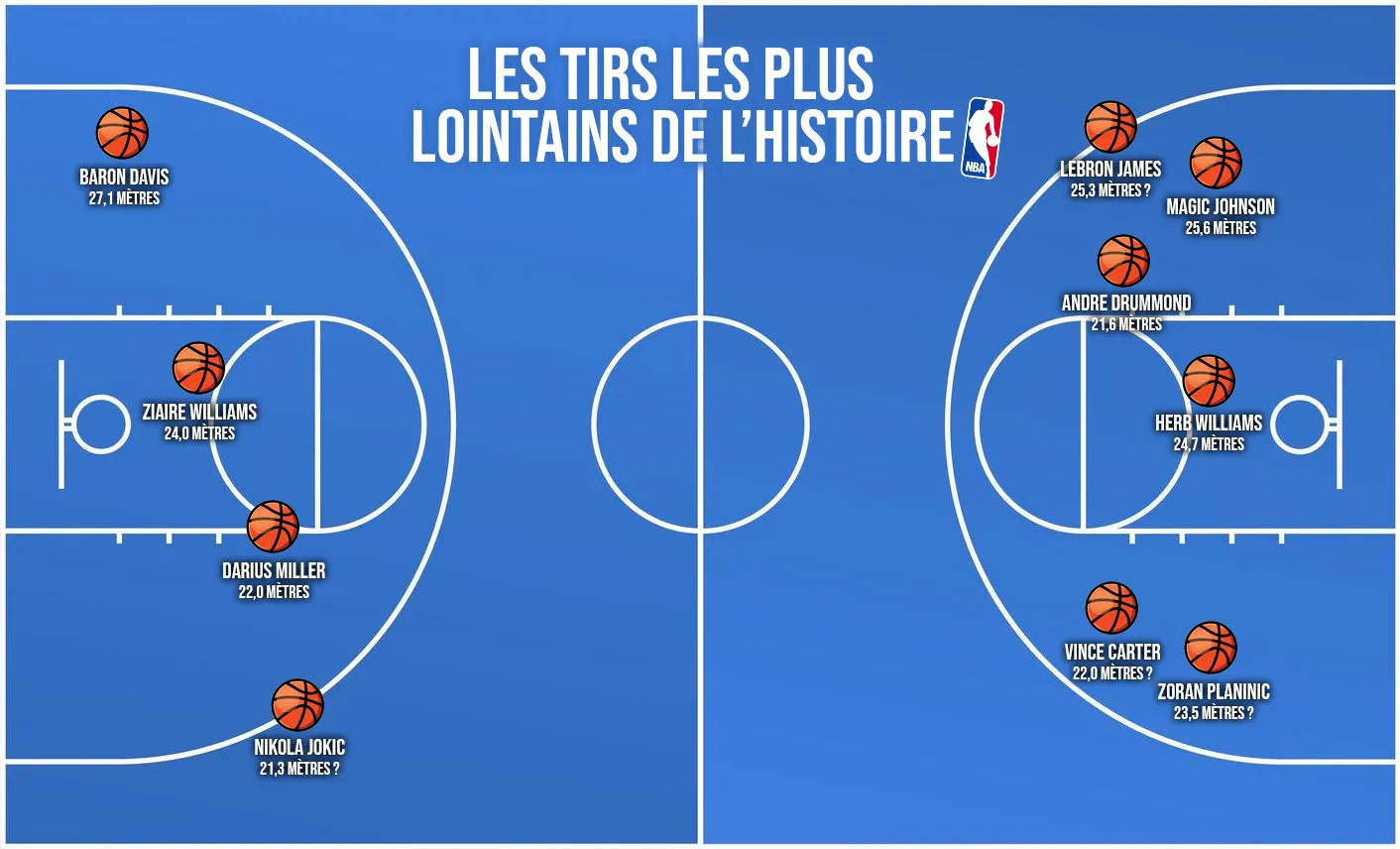 Le tir “ave maria” de Nikola Jokic pourrait même rentrer dans le Top 10 des tirs les plus lointains réussis dans l'histoire de toute la NBA. Mesuré officiellement par la ligue à 20m10 du panier, il y a fort à parier que cette mesure soit réévaluée. Le triple MVP décoche son ogive au même niveau que sa propre ligne des lancers-francs, située à 21,3 mètres du panier de l'autre côté du terrain, en étant sur le côté du parquet. Ce qui pourrait lui permettre de se glisser au milieu de la hiérarchie des prières les plus lointaines.