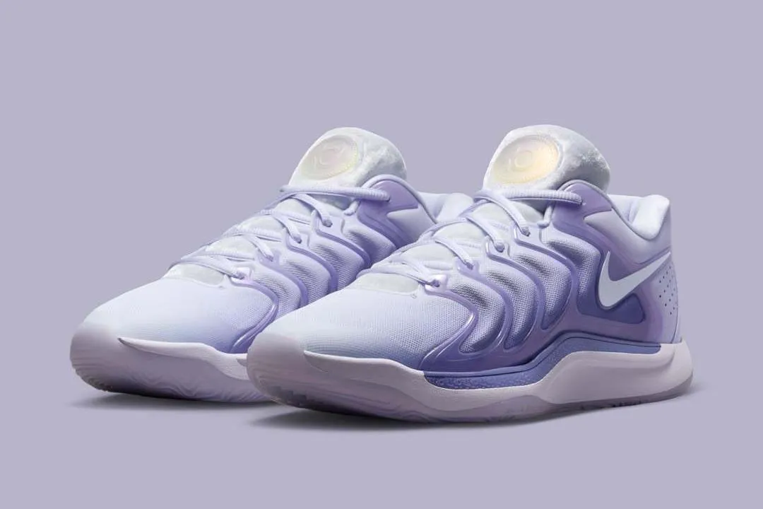Lancé sur la KD 15 et ressorti pour la KD 16, c’est en fait un hommage à sa grand-mère avec ses initiales B.A.D. à l’honneur pour Barabara A. Davis. La collection se distingue par sa tige couleur « lavande » avec ici plusieurs tons de violet assorties d’un « Swoosh » blanc. La petite touche de nouveauté est présente sur la languette, entre son revêtement à l’effet peluche pour un peu de douceur et le logo KD entre rose et jaune. La semelle intermédiaire en violet pâle repose sur une semelle extérieure translucide.