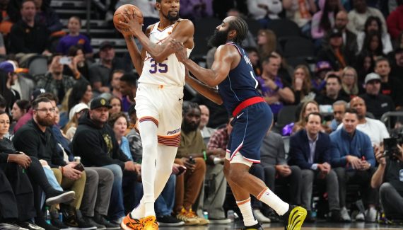 – Armée de shooteurs face à force intérieure. James Harden avait donné le ton en trouvant Ivica Zubac dès la première possession du match sur le « pick-and-roll » avec une magnifique passe dans le dos ouvrant un dunk facile au pivot. Ce sera le thème de la soirée pour les visiteurs qui ont inscrit 60 points dans la raquette adverse. Les Suns ont été beaucoup moins prolifiques en la matière (24), mais ont compensé par une grosse adresse à 3-points : 22/47 ! Avec cinq joueurs à trois paniers primés ou plus (Booker, Jones, Durant, Allen et O’Neale), les Suns ont égalé leur record de saison derrière l’arc (22).
